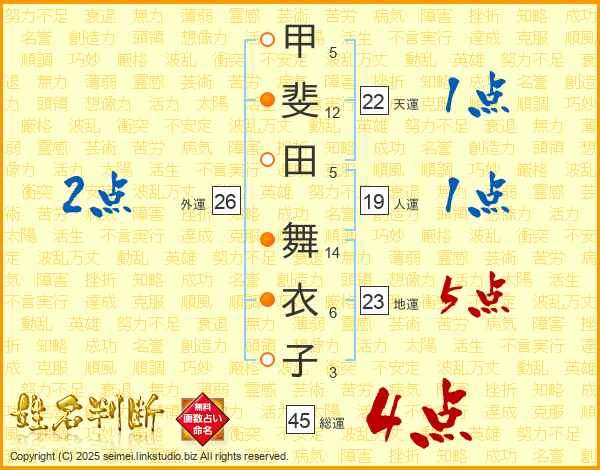 甲(5画)斐(12画)田(5画) 舞(14画)衣(6画)子(3画)