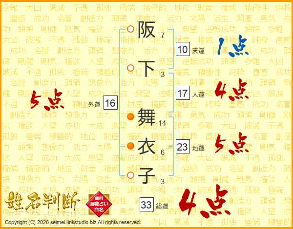 阪下舞衣子さんの総運は33画の4点!