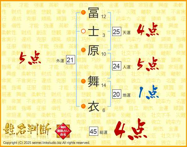 冨(12画)士(3画)原(10画) 舞(14画)衣(6画)