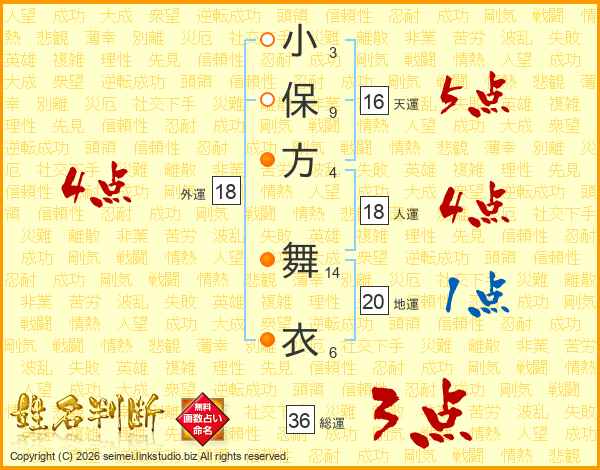小(3画)保(9画)方(4画) 舞(14画)衣(6画)