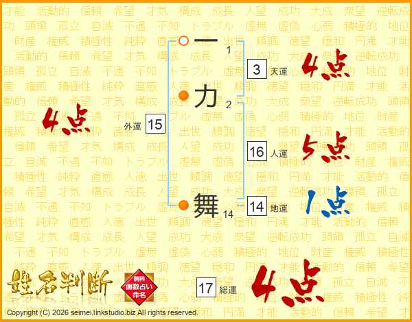 一力舞さんの総運は17画の4点!