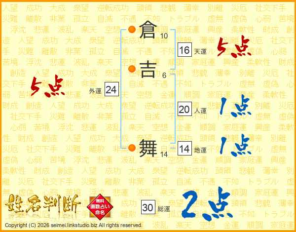 倉吉舞さんの総運は30画の2点!