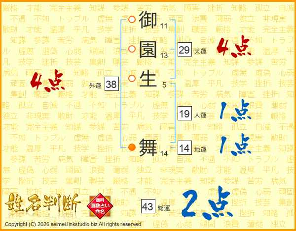 御園生舞さんの総運は43画の2点!