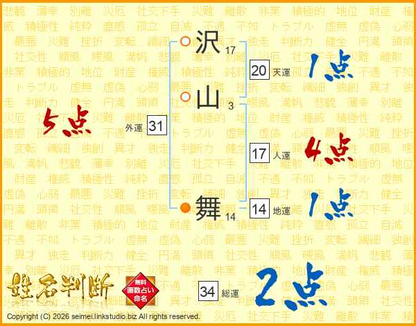沢(17画)山(3画) 舞(14画)