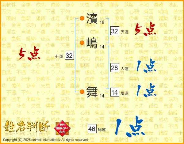 濱嶋舞さんの総運は46画の1点!