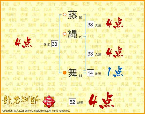 藤縄舞さんの総運は52画の4点!