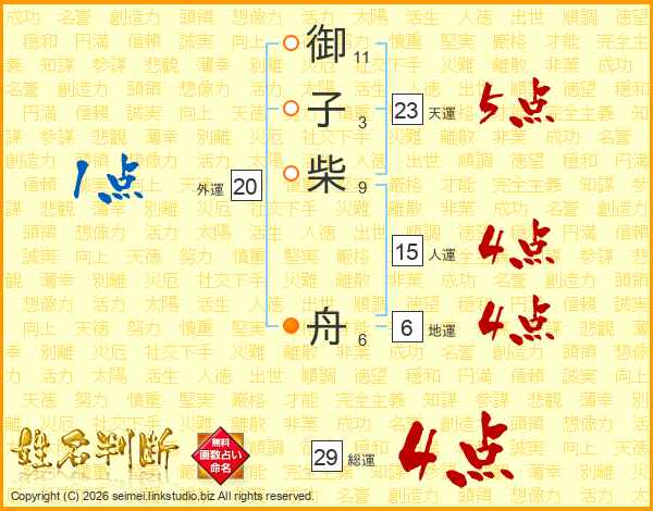 御子柴舟さんの総運は29画の4点!