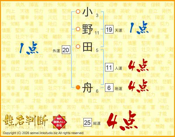 小野田舟さんの人運は11画の4点!