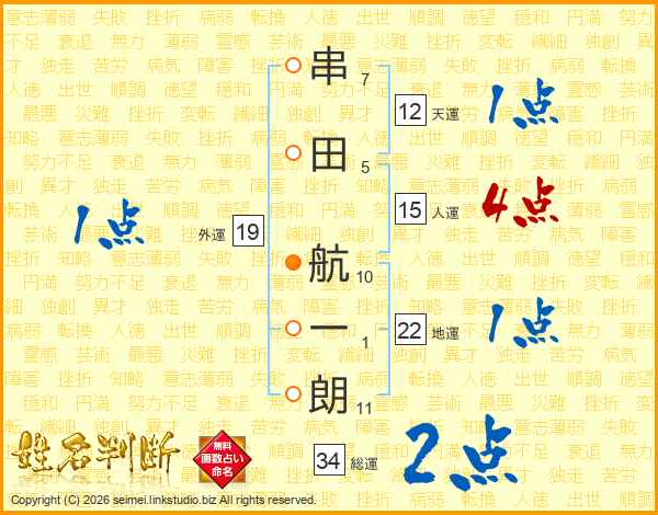 串田航一朗さんの人運は15画の4点!