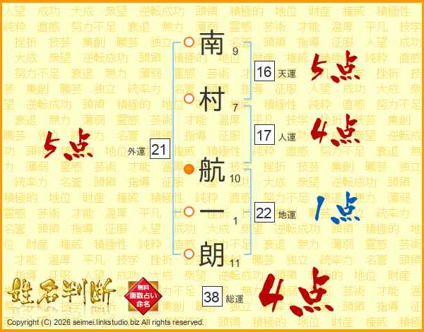 南村航一朗さんの天運は16画の5点!
