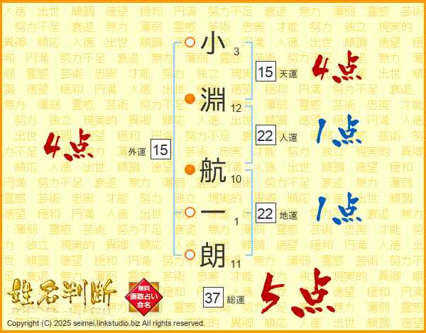 小淵航一朗さんの総運は37画の5点!