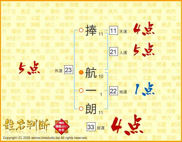 捧航一朗さんの総運は33画の4点!
