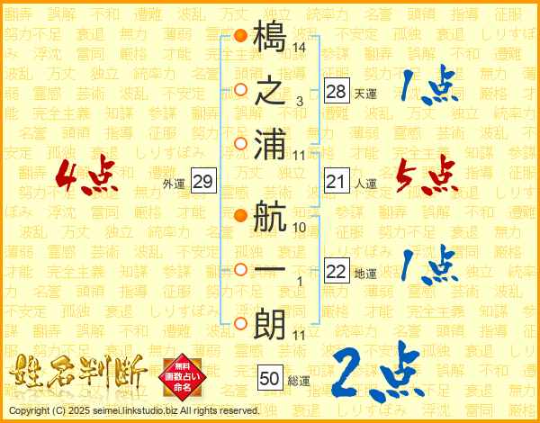 槝(14画)之(3画)浦(11画) 航(10画)一(1画)朗(11画)