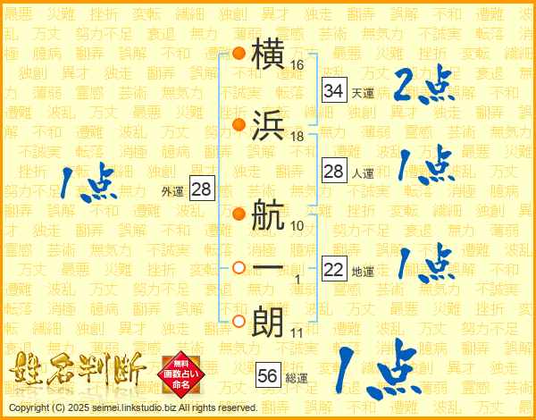 横浜航一朗さんの地運は22画の1点!