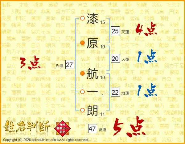 漆原航一朗さんの天運は25画の4点!
