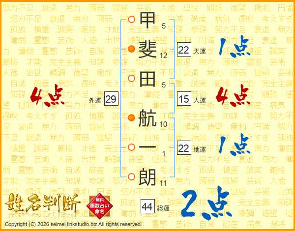 甲斐田航一朗さんの総運は44画の2点!