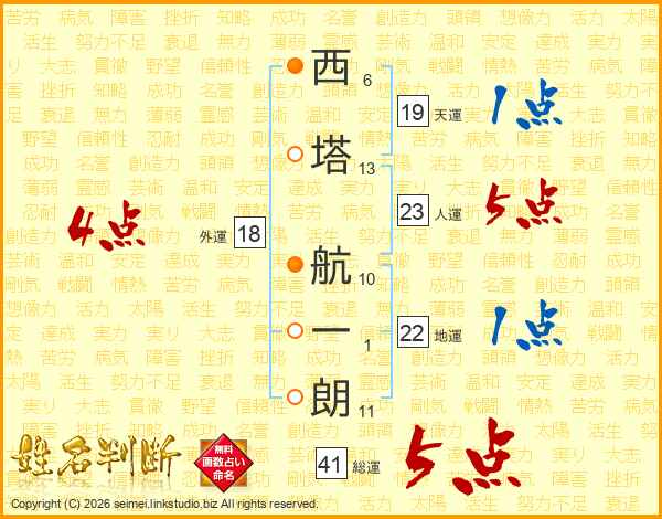西塔航一朗さんの総運は41画の5点!