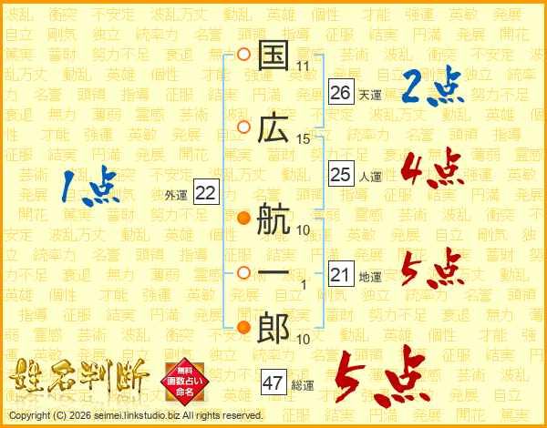 国広航一郎さんの総運は47画の5点!