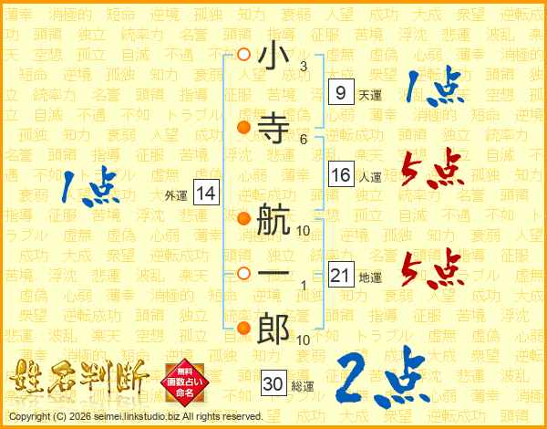 小寺航一郎さんの総運は30画の2点!