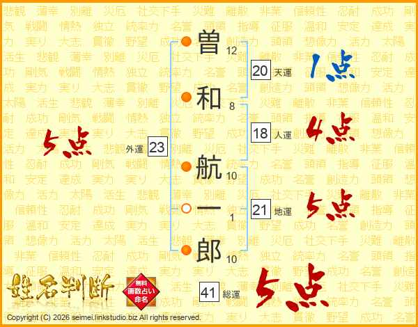 曽和航一郎さんの地運は21画の5点!