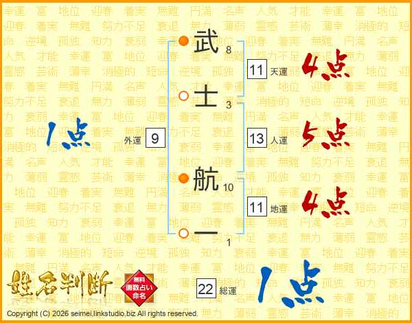 武士航一さんの総運は22画の1点!