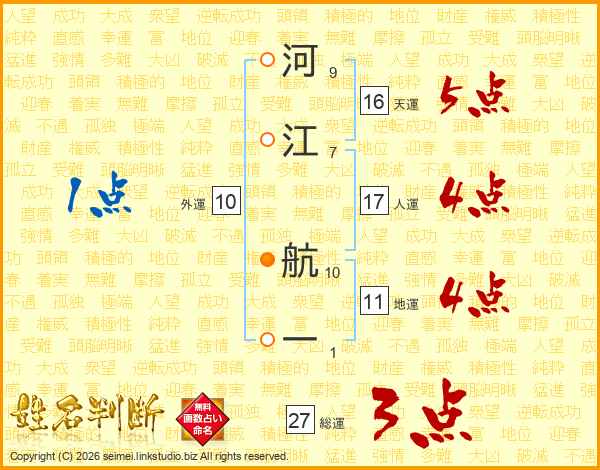 河江航一さんの人運は17画の4点!