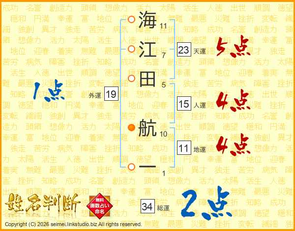 海江田航一さんの総運は34画の2点!