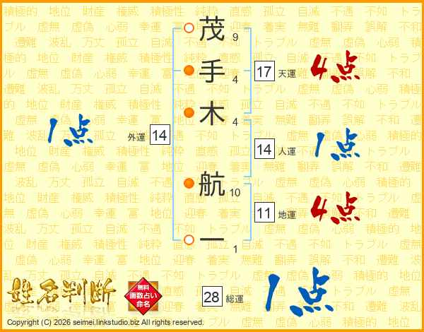 茂手木航一さんの天運は17画の4点!