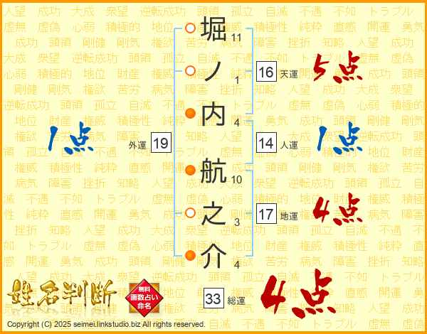 堀ノ内航之介さんの総運は33画の4点!