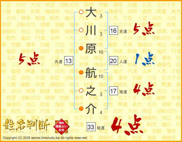 大川原航之介さんの総運は33画の4点!