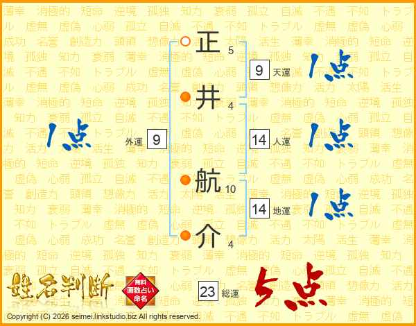 正井航介さんの人運は14画の1点!