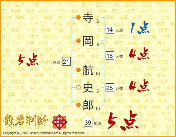 寺岡航史郎さんの総運は39画の5点!