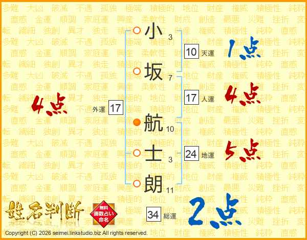 小坂航士朗さんの人運は17画の4点!