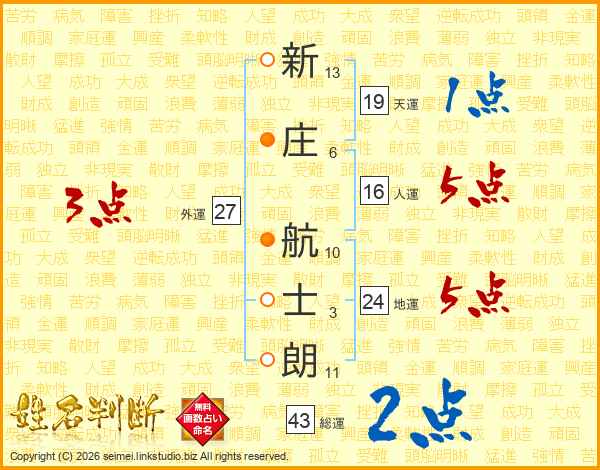 新庄航士朗さんの地運は24画の5点!
