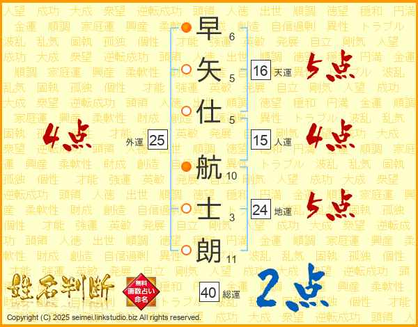 早矢仕航士朗さんの天運は16画の5点!