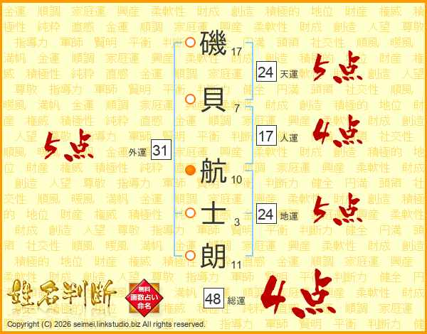 磯貝航士朗さんの天運は24画の5点!