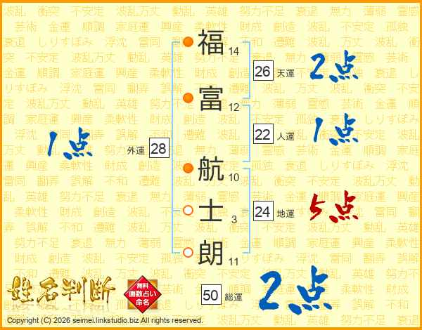 福(14画)富(12画) 航(10画)士(3画)朗(11画)