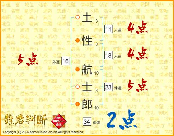 土性航士郎さんの総運は34画の2点!