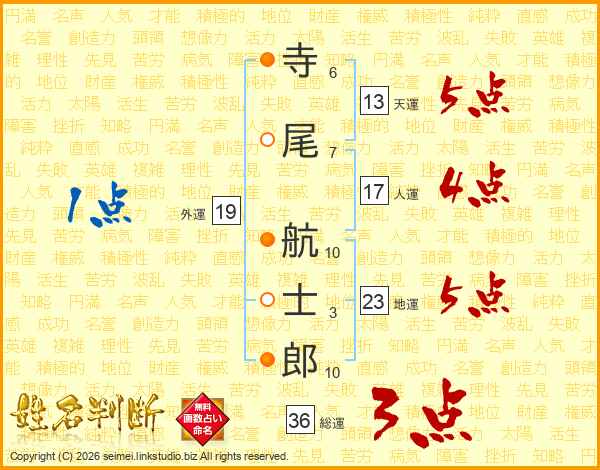 寺尾航士郎さんの天運は13画の5点!