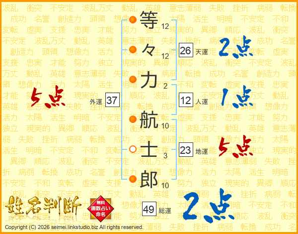 等々力航士郎さんの天運は26画の2点!