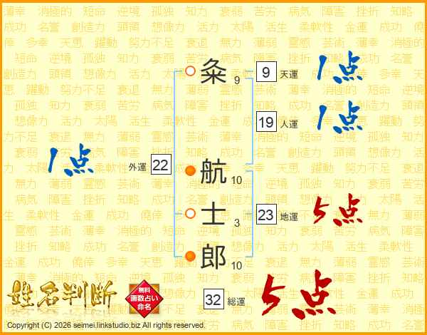 粂航士郎さんの地運は23画の5点!