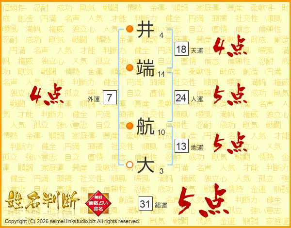 井端航大さんの天運は18画の4点!