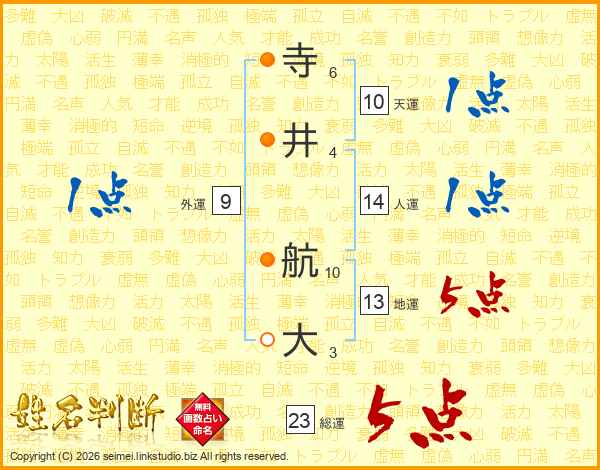 寺井航大さんの人運は14画の1点!