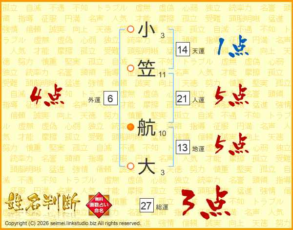 小笠航大さんの総運は27画の3点!