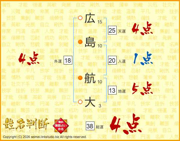 広島航大さんの地運は13画の5点!
