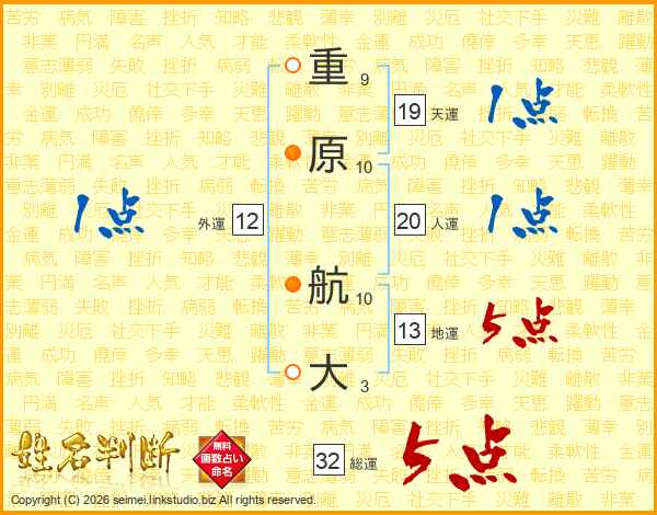 重原航大さんの天運は19画の1点!