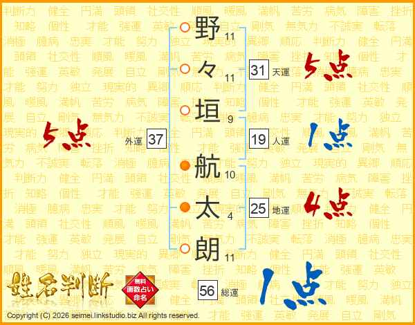 野々垣航太朗さんの地運は25画の4点!
