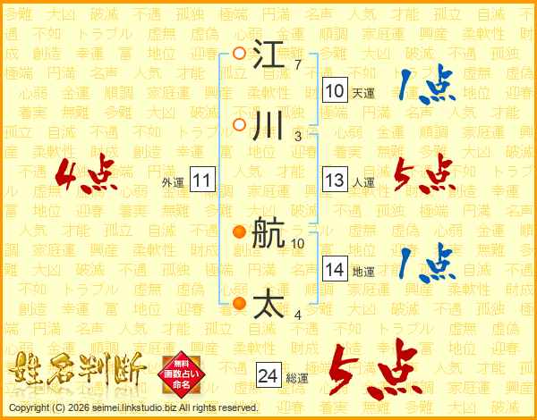 江川航太さんの総運は24画の5点!