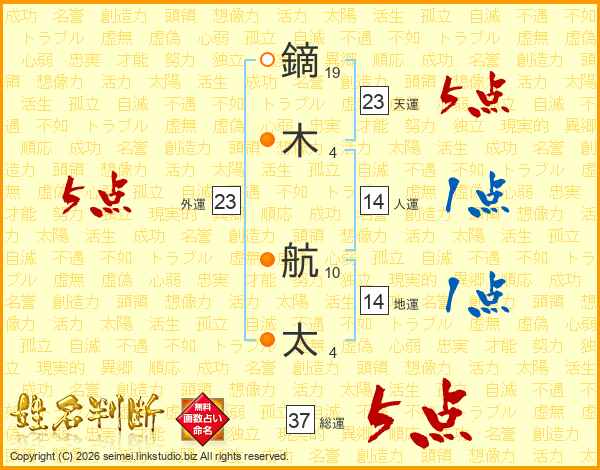 鏑木航太さんの人運は14画の1点!