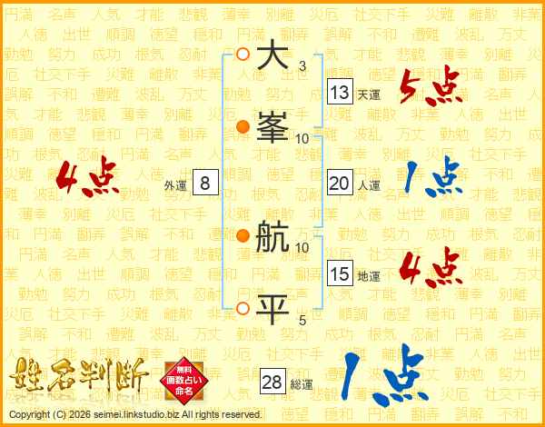 大峯航平さんの人運は20画の1点!